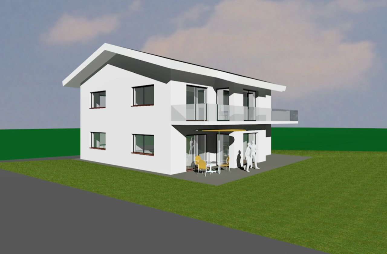 Für eine Familie im Ostalbkreis plante das Atelier W3 ein zweigeschossiges Wohnhaus in massiver Bauweise. Die Lage des Grundstücks in einer bebauten Ortschaft führten zum Konzept eines zweigeschossigen Baukörpers.
