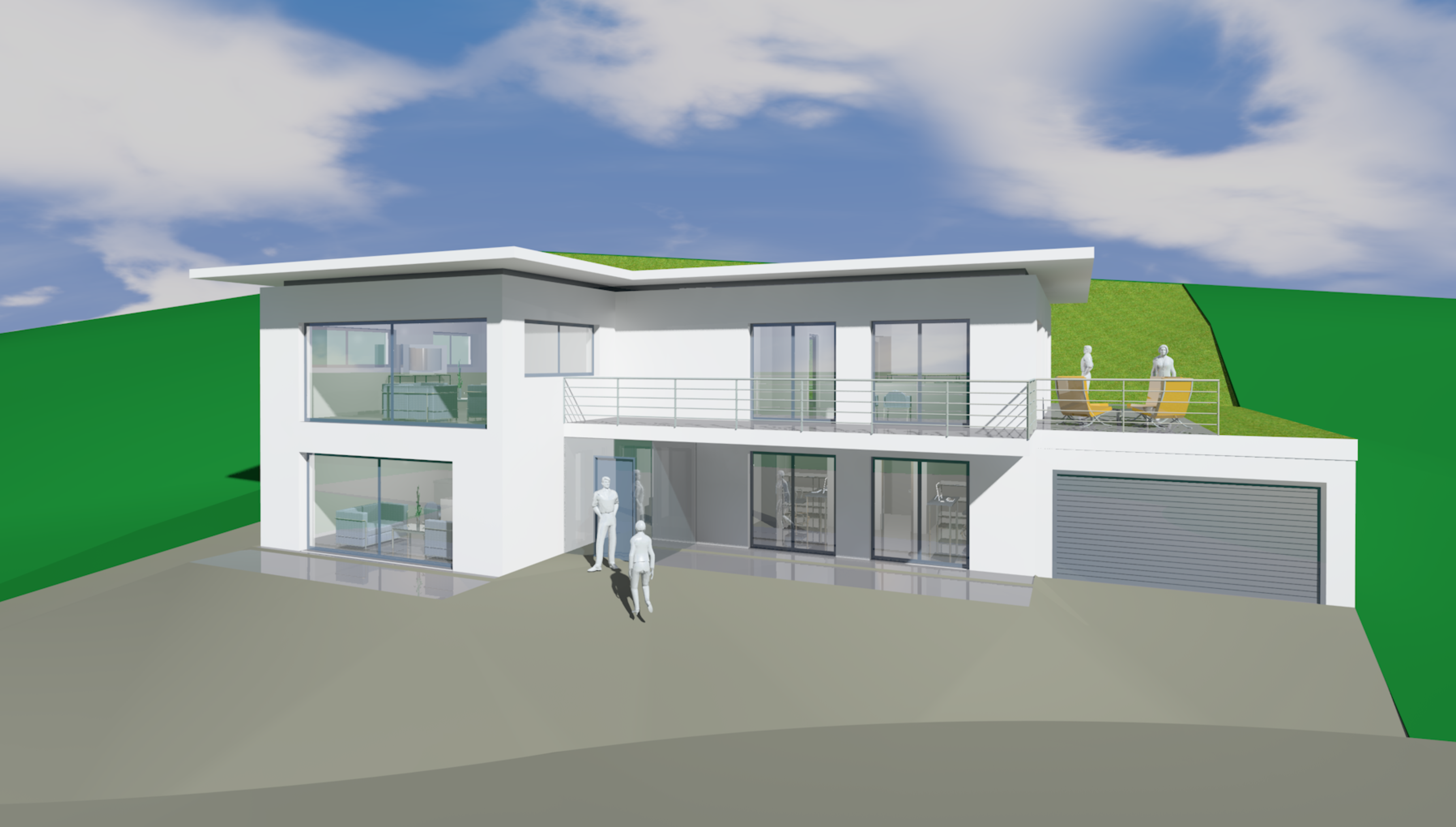 Für eine vierköpfige Familie plante das Bauatelier W³ ein attraktives Wohnhaus in Holzständerbauweise. Wohnhaus und Grundstück mit Garten bilden eine gestalterische Einheit. Von Anbeginn war die Lage des Grundstücks in einer extremen Hanglage für Hans Max Wurth ein wichtiges Kriterium. Die Ausblicke auf die umgebene Landschaft sollten von möglichst vielen Wohnräumen aus erlebbar sein. Die Freiraumplanung wurde auf das Grundstück angepasst